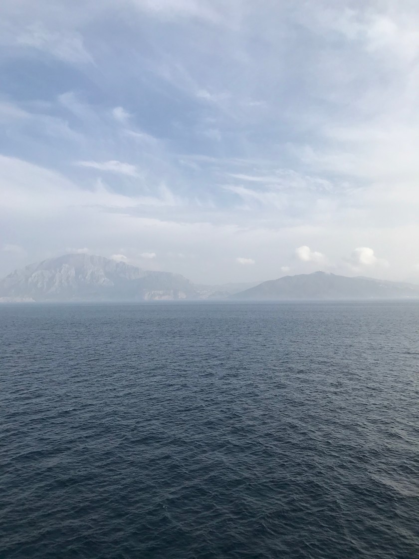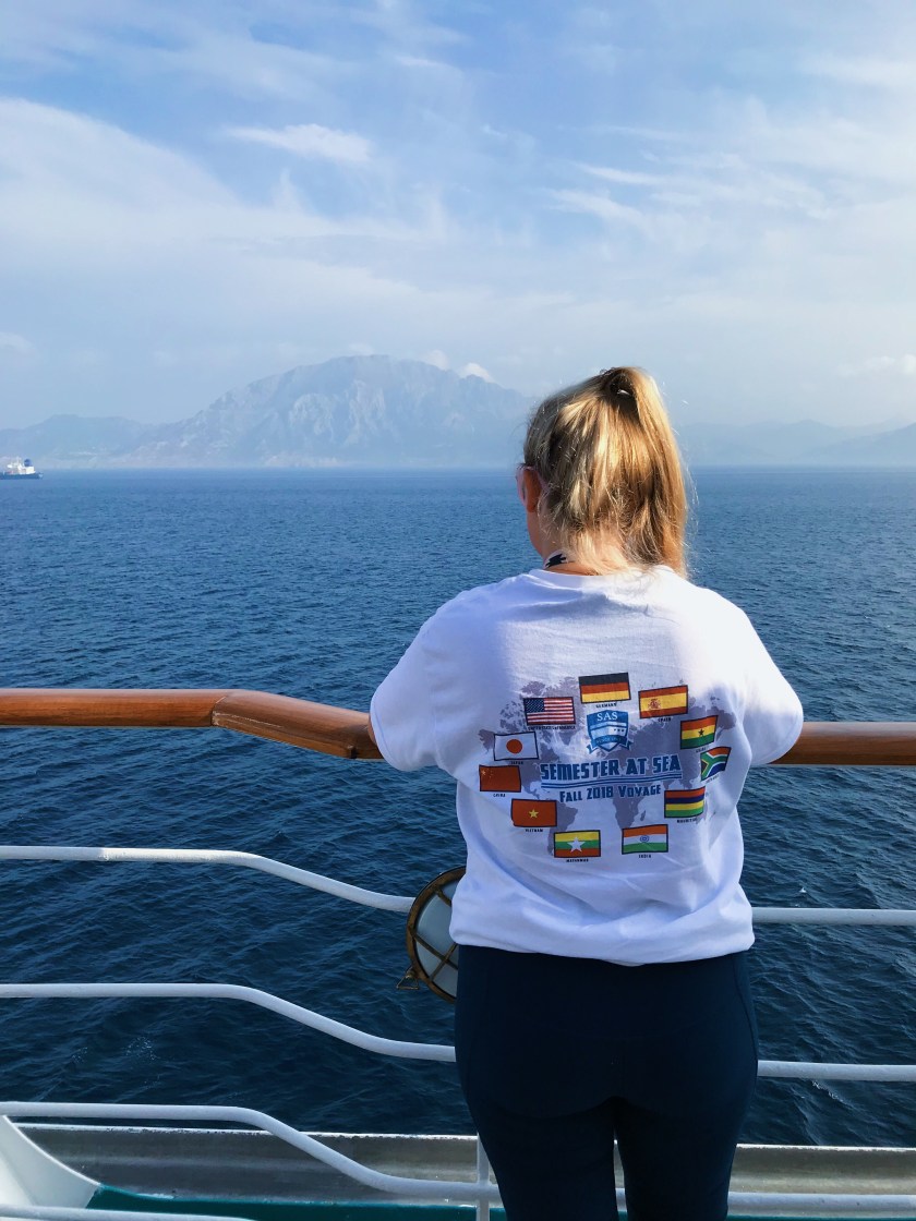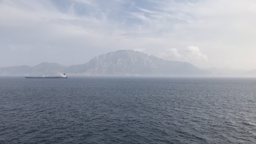 We have already sailed through The English Channel and the Straits of Gibraltar on our way to our first port, Barcelona, Spain! Getting to sail through these two major waterways was such a great experience! I loved that I was able to see both England and France on either side of our vessel through The English Channel. It was amazing! The hills and mountains of Morocco were absolutely breathtaking as we went around the Strait of Gibraltar and Mount Gibraltar was massive! I have included some pictures of those two passages that I think you’ll enjoy!