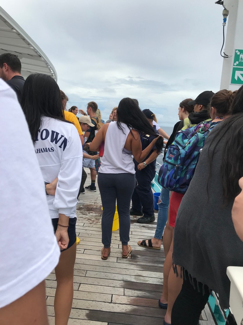 For my ecology class we conducted a Plankton Tow for an experiment. We dragged a net with a collecting tube attached to the end of the cone-snapped net behind the ship to collect water samples. After we collected a few samples we brought them back inside to our classroom to look at through microscopes. Our group looked at our water sample under both UV light and normal, white light. The UV light reacted with the contents of our seawater sample chemically and rapidly underwent photosynthesis. While the chemical reaction continued it turned out water sample darker and darker yellow. We did have a few plankton in our water sample but the chemical reaction had unfortunately killed off any living organisms in our seawater sample.