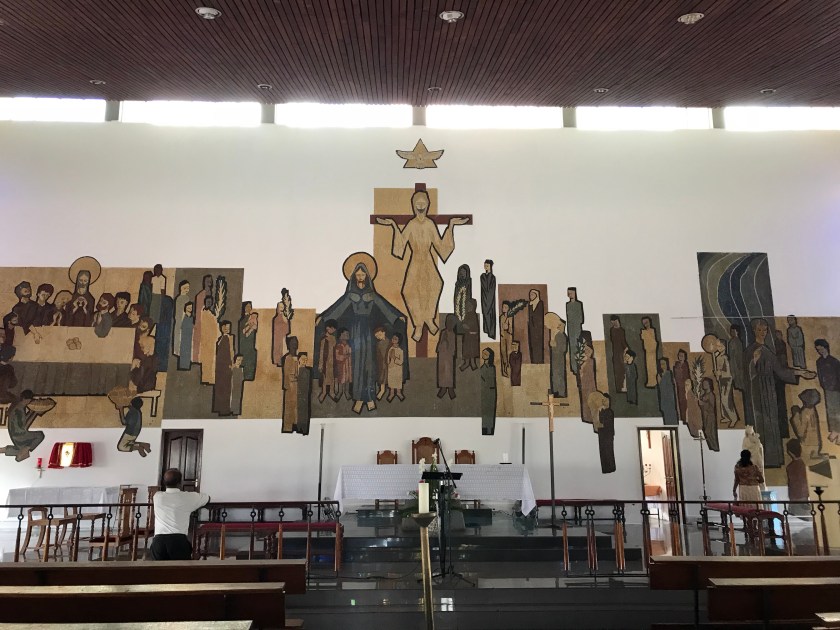 The fourth stop of our day was at the Pere Laval Shrine. Pere Laval was the European who brought Roman Catholicism to the island initially. His body is buried in a shrine off to the left of the church. Members of the church come daily to visit the shrine and pay their respects to Pere Laval for bringing Catholicism to their island and saving those who chose to convert.