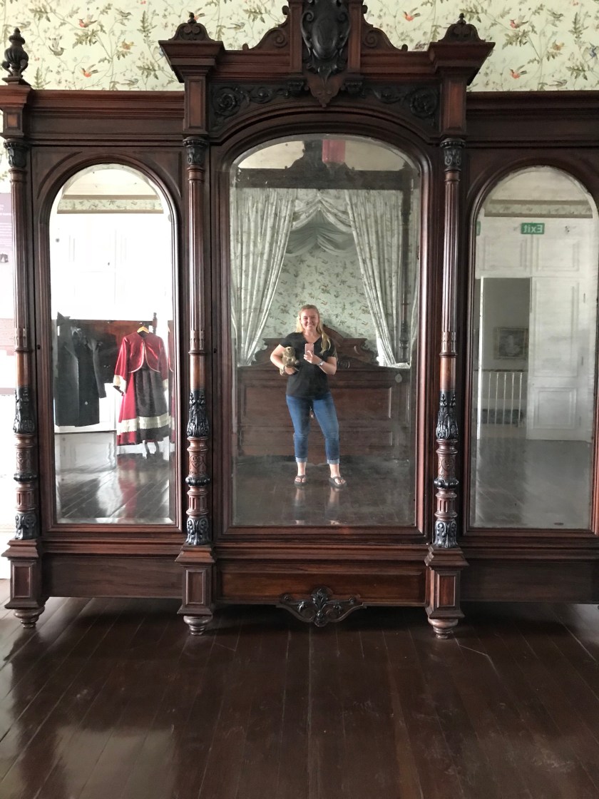 Our final stop for the day was a French chateau built on a sugar cane farm. The chateau was called the Labourdonnais. The manor house was absolutely stunning. The dinning room was covered in wallpaper depicting a forest scene and a massive dinning table able to seat 25 people stood in the center of the room under an intricate chandelier. The staff were setting up for a wedding scheduled to be held that night and the venue was so magical. The backyard, where the ceremony was to be held, had glass bottles filled with fairy lights hanging over the alter and a clean white carpet leading down the aisle. The reception was also set up outside. The tables were adorned in white table cloths and simple, single candle centerpieces encircled with white floral accents. The temporary dance floor was lit up with multicolored lights surrounding the front yard. It would have been so beautiful to experience the wedding itself while we were there, but sadly we had a ship to catch. After leaving the chateau, we watched the sun slowly begin to set over the island.