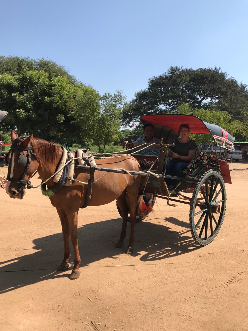 While in Bagan, I got to see a small portion of the 5,000 golden pagodas by way of a horse-drawn carriage ride through the rural parts of the city. Our carriage trotted through the brush as I snapped pictures along the way of the golden pagodas strewn among the greenery and fields. I also got to experience one of the most breathtaking sights ever. I got to hot air balloon over the golden pagodas and city of Bagan during sunrise. This was my first time hot air ballooning and the feeling was indescribable.