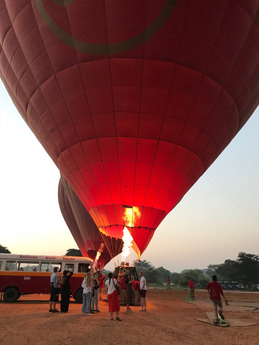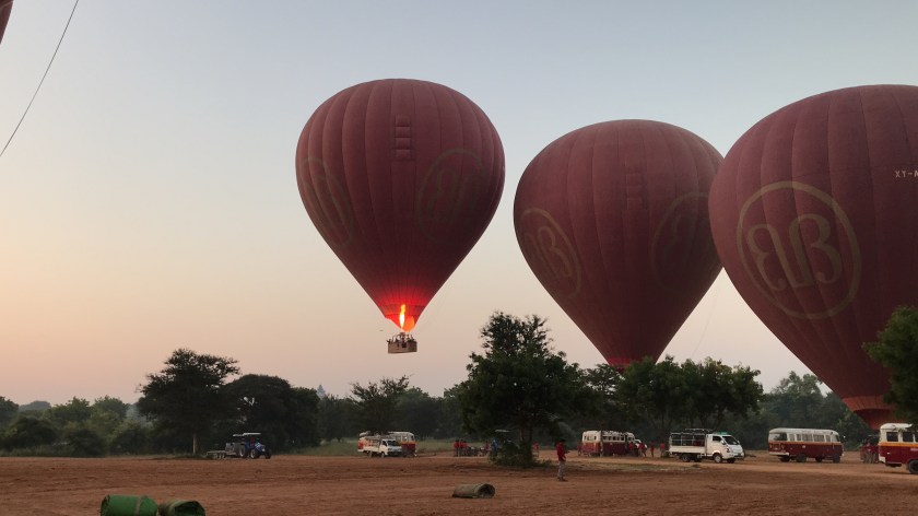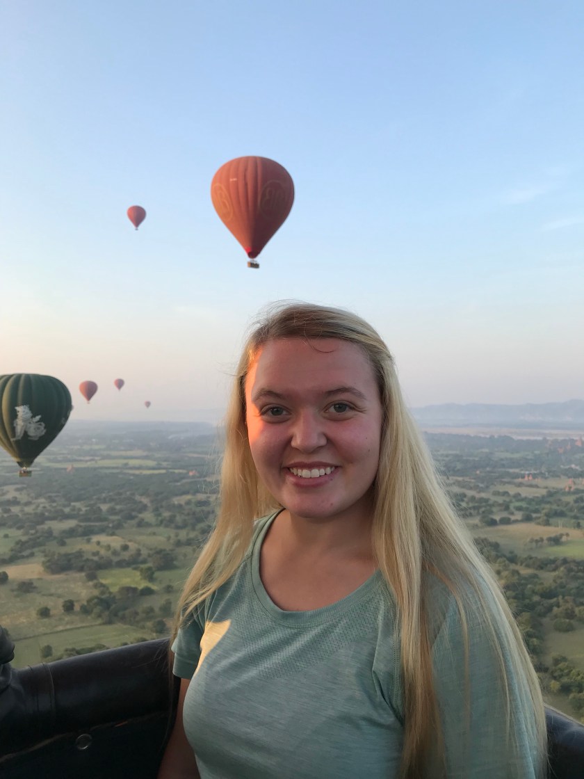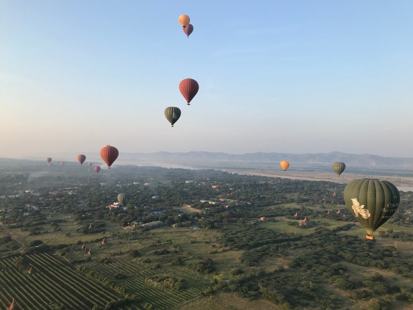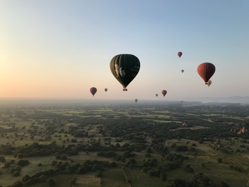 As the sun peeked it’s head above the horizon, I was floating through the sky and looking down at the gold and green city of Bagan waking up for the day. There were over 40 other balloons floating over the city with us and people down below waved good morning to our balloons as we passed overhead. There were children chasing after our balloons and yelling up at us with the biggest smiles on their faces until they could no longer keep up with our balloon. If you know me at all, you know very well that I am not a morning person… but waking up before the sunrise and watching the early rays of sunlight cast glowing beams of warm, soft yellow light over the golden pagodas and the temples of Bagan had me appreciating my 4am wake-up call. This unique experience brought me so much joy and amazement for many years to come.