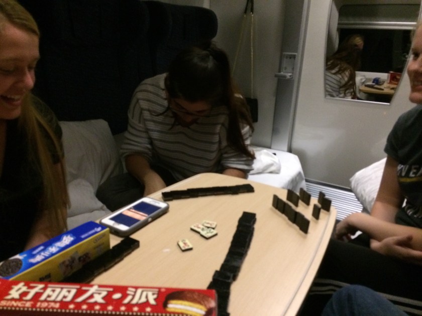 China was full of so many firsts for this trip! I traveled to Beijing from Shanghai on a sleeper train with some friends for the first time. We played Mah Jongg on the train together in the country where Mah Jongg is a nation-wide loved game. Drinking a fresh-squeezed cup of Orange Juice from a vending machine. I saw and climbed the Great Wall for the first time. Traveling through the Forbidden City for the first time, both on foot and by way of Rickshaw rides. I got to take my first bullet train ride from Beijing to Xi’an (pronounced ‘she-on’). While in Xi’an, I got to come face-to-face with the Terra Cotta Warriors for the first time. Trying Nitrogen-dipped Ice Cream for the first time near the Terra Cotta Warriors Museum. And getting my feet nibbled on by the little fish used in fish pedicures in a small water village outside of Shanghai.