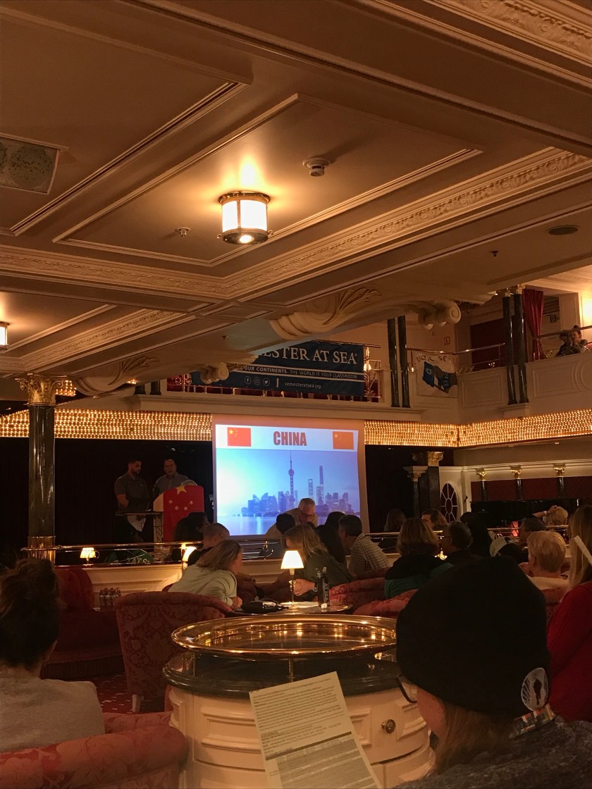 We were nearly a full day late arriving into port due to a crane working in the middle of our passage into the docks. The night before we saw the MV Explorer pulling out of the berth we were supposed to occupy the next morning. The MV Explorer was the previous ship used by Semester at Sea but has now retired to making short trips around Asia. It was super neat to see one of SAS’s previous ships during our voyage. One legacy passing another.