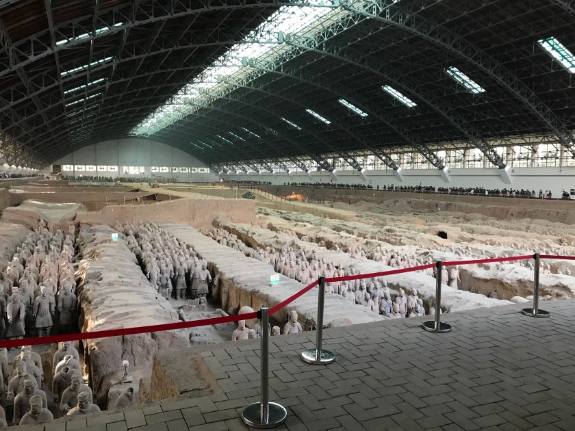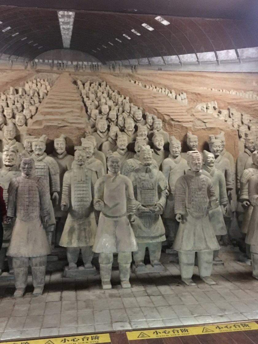 Another first I was really excited for was seeing the Terra Cotta Warriors in Xi’an! I remember learning about the Warriors in social studies back in sixth grade and I have always wanted to visit them myself. I heard from a friend that her aunt traveled to China for business in the past year and while she was walking around Xi’an at night, she claimed to have seen a few ghosts of the Terra Cotta Warriors marching through the streets. She said she could only see them from the knees up because they were marching along the old streets of the city that have since then been paved over. I have also read many other accounts of people encountering ghosts of Terra Cotta Warriors over the years. I was hoping to encounter my own ghost sightings but unfortunately I didn’t. I was so surprised to learn that the Terra Cotta Warrior pits are still being excavated and studied, I thought they were just open for viewing now. It was wild to see my middle school history lesson come to life as I walked through the pits full of warriors both in tact and many shattered in pieces.