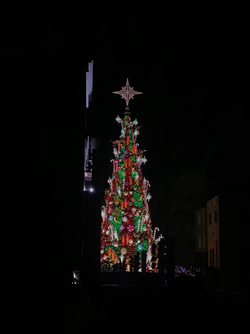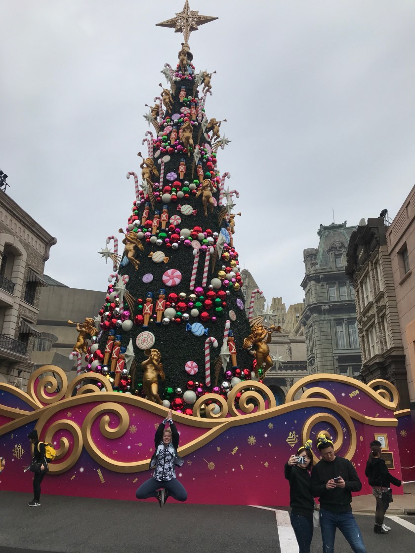 - Pineapple jumped in front of the Universal Studios Japan globe and Christmas tree