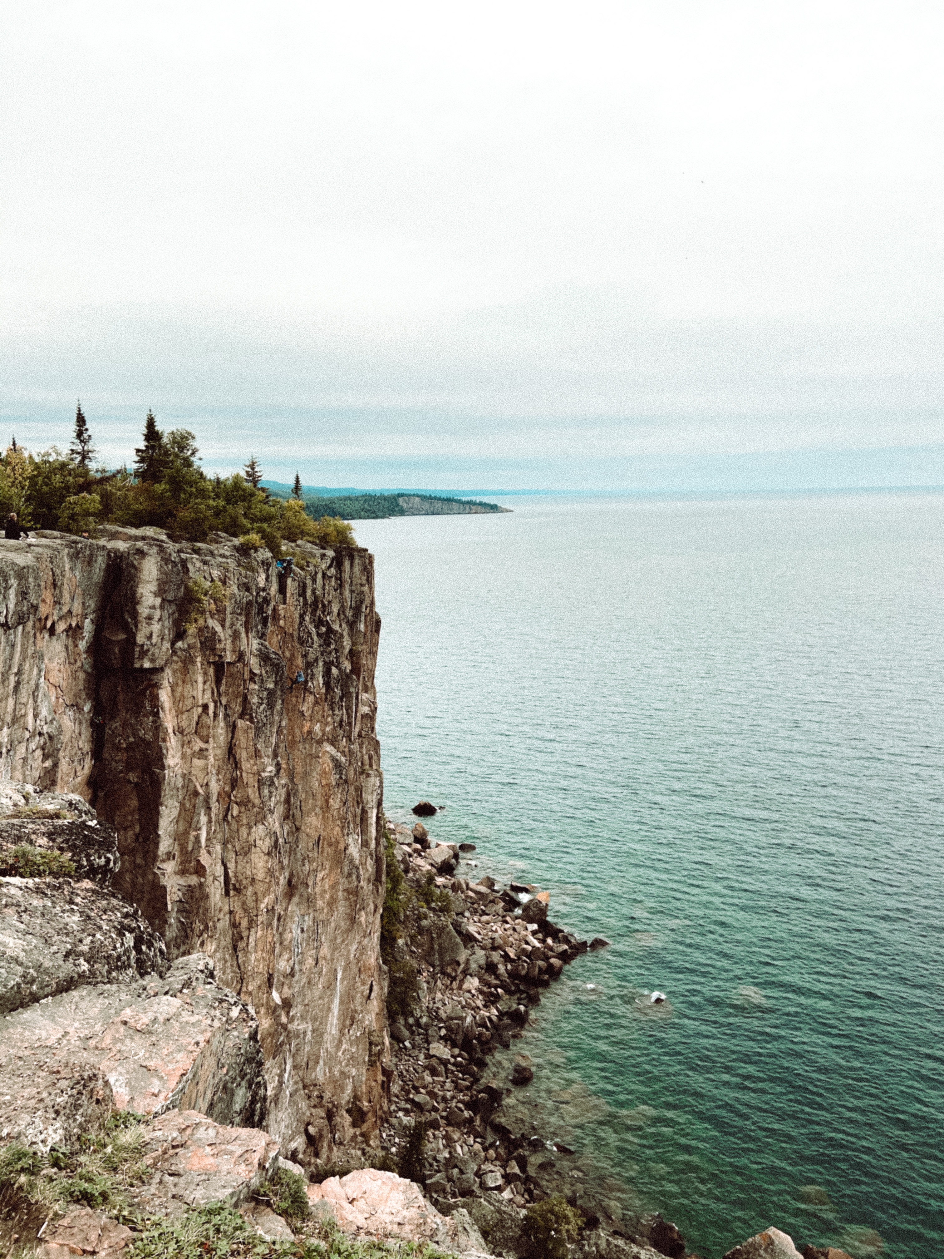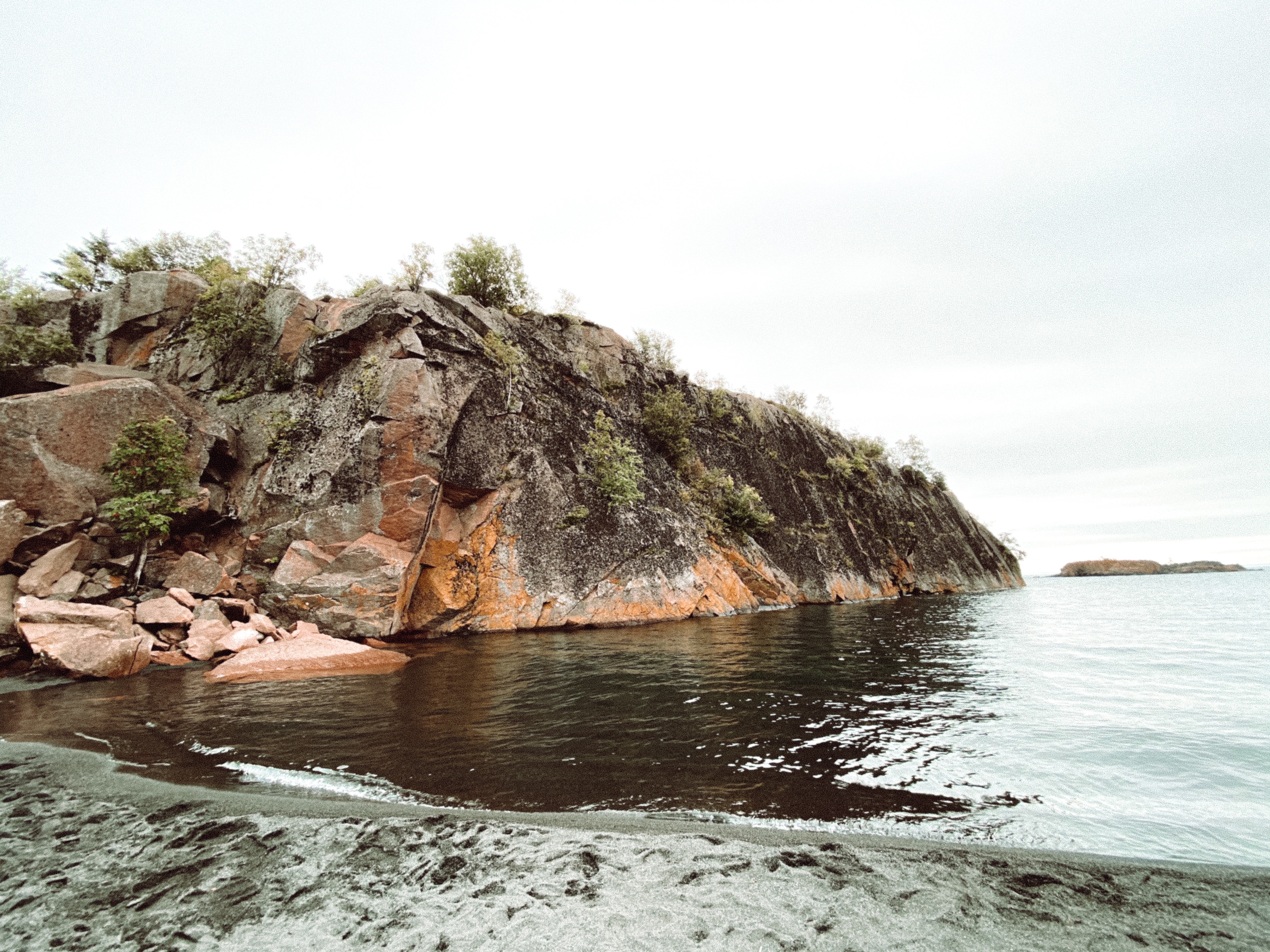 Scenic stops along the North Shore to visit – Black Sands Beach, Palisade Head, and Split Rock Lighthouse.